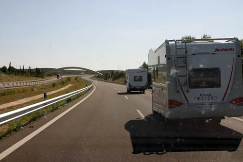 1. En ruta. Entre el equipo de remeros: 2 y el equipo de apoyo: 9 llevamos 3 autocaravanas. En la foto cruzando el Meridiano de Greenwich (el arco)