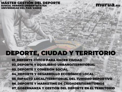 Las dos temáticas que me plantearon fueron «Deporte, Ciudad y Territorio» y «Nuevas tecnologías en el deporte”. ¡Buf! ¡Como para decir que no! Estos son los contenidos de mis clases. Tal vez a alguien le pueda servir.
