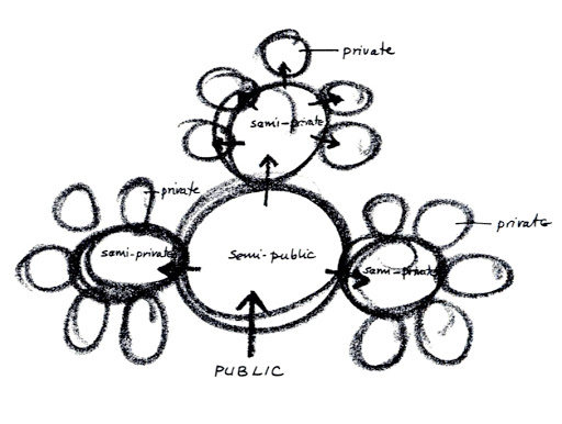 Newman no tenía gran confianza en la idea de cuidado común del espacio público ni en la convivencia. Según él, para que un espacio fuese defendido debía convertirse en gran medida en espacio privado o semiprivado.