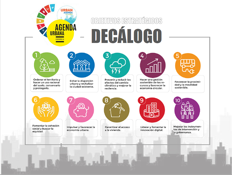 La Agenda Urbana Española, tomada en consideración por el Consejo de Ministros el 22 de febrero de 2019, es la hoja de ruta que va a marcar la estrategia y las acciones a llevar a cabo hasta 2030, para hacer de nuestros pueblos y ciudades ámbitos de convivencia amables, acogedores, saludables y concienciados. Constituye un verdadero “menú a la carta” para que todos los actores, públicos y privados, que intervienen en las ciudades y que buscan un desarrollo equitativo, justo y sostenible desde sus distintos campos de actuación, puedan elaborar sus propios Planes de Acción.